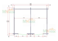 Caseta de jardín baño doble de 5,90m² construidos y de 5,20m² de superficie útil, de 28 ó 45 mm de grosor de la madera.